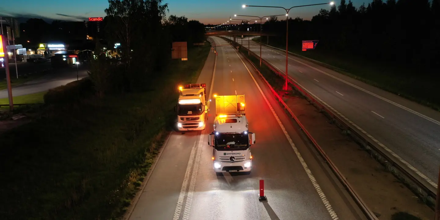 Vi löser dina behov av TMA-skydd vid vägarbete, sprängning, beläggning med mera. TMA (Truck mounted attenuator) är ett lastbilsburet tvärgående påkörning skydd som skyddar och vägleder trafikanter vid vägarbetsplatser. TMA används som vägledning, förvarning eller påkörningsskydd. Våra TMA-fordon skyddar effektivt arbetsplatsen och kan hyras med eller utan chaufför.